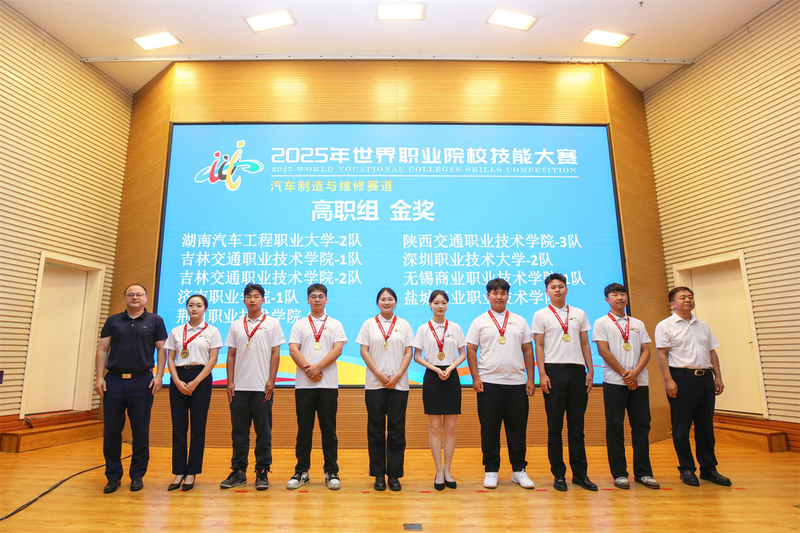 全国汽车职业教育教学指导委员会秘书长徐念峰,吉林省教育厅副厅长刘学军为高职组金奖获奖队伍颁发奖牌。
