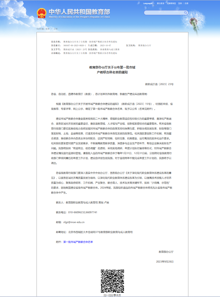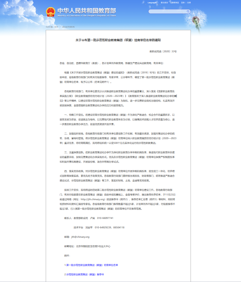 获评国家首批示范性职业教育集团(联盟)培育单位